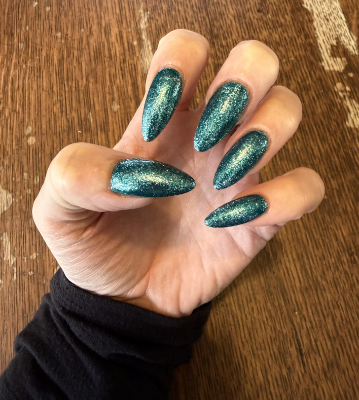 - Paint two thin layers of bold teal nail color and let it dry fully.