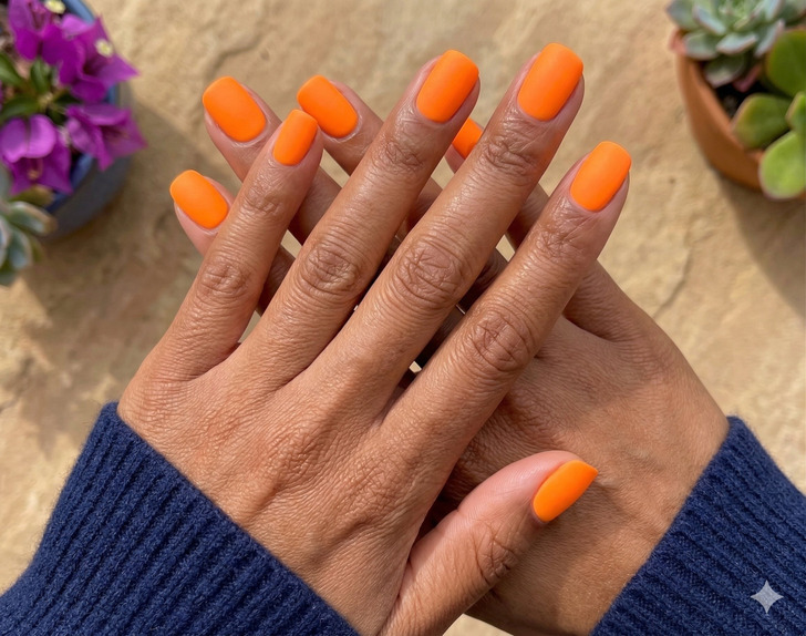Bright orange is the summer 2026 nail trend that feels like a sunset and a vacation all at once—warm, fizzy, and impossibly fun. This juicy, burnt-meets-bright orange nail color sits right between terracotta and neon, making it the most wearable bold nail design of the season. Basically, your nails ordered something fresh to drink, and it arrived looking this good.