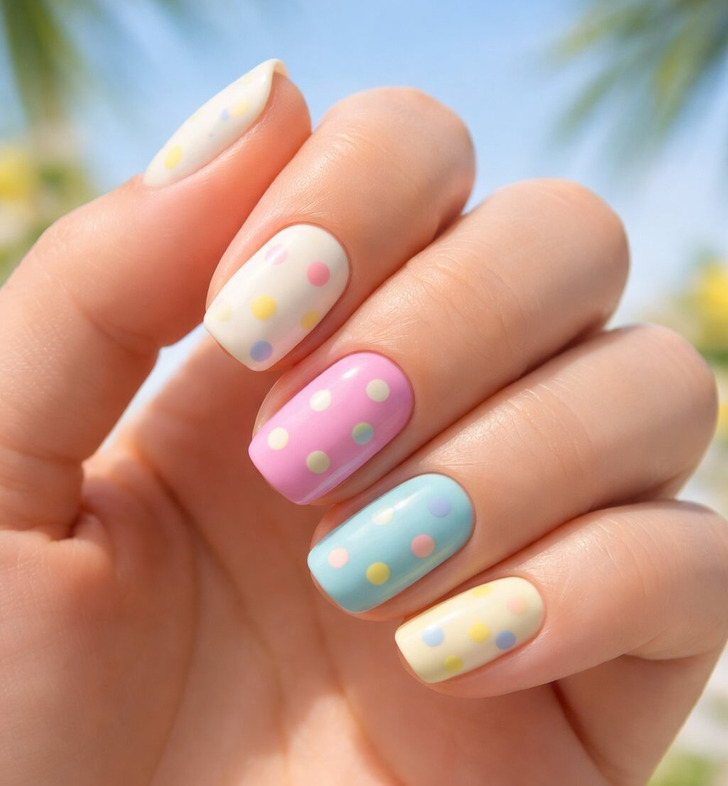 Dots. Just dots. Somehow, the simplest nail design of all time is the hottest thing in summer 2026 nail trends right now and nobody is complaining. Tiny polka dots scattered across dreamy pastel nail colors are combining retro charm with modern cool in the most unexpectedly addictive way.