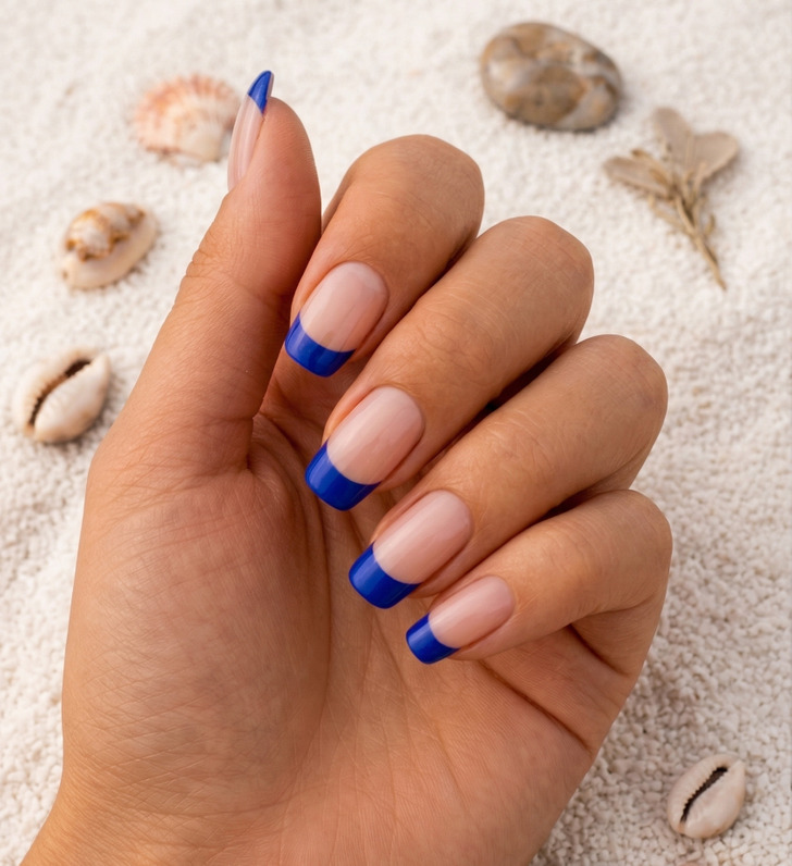 The colored French tip is officially the new classic, and the bold cobalt blue version proves it works.