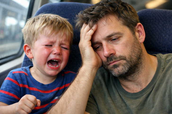- On a long train ride I sat next to a dad and his kid. The kid was all over the place dropping stuff and asking a million questions, just being restless. The dad looked totally wiped out like he hadn’t slept in days.