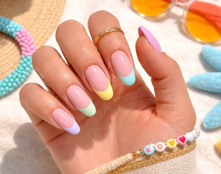 Pastel-colored tips bring a playful update to summer nails, combining soft hues with a clean, modern nail design. This look works beautifully in both nail polish and gel manicure styles, often paired with neutral bases for a fresh, balanced finish. In salon settings, pastel tips offer endless creativity while still keeping the overall beauty aesthetic light and wearable. It’s a simple yet stylish way to add color without overwhelming your everyday look.