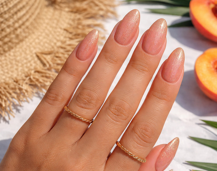 Peach sparkle nails bring a warm, radiant touch to summer nails, blending soft peach tones with a subtle shimmer for a fresh nail design. This style works beautifully in both nail polish and gel manicure finishes, adding a luminous glow that catches the light with every movement. In salon settings or at-home beauty routines, peach sparkle offers a playful yet polished look that feels effortlessly seasonal. It’s the perfect choice for anyone wanting a hint of shine with a soft, feminine edge.