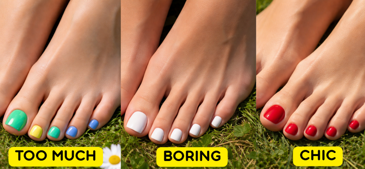 If there’s one pedicure trend dominating right now, it’s the French tip. Many fashionistas prefer crisp white tips peeking from their sandals. The style feels timeless and effortlessly luxurious.
