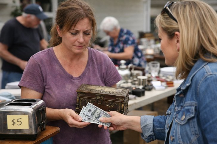 A woman I’d never seen before, roughly my age, picked up a heavy, ornate jewelry box that had been in my family for generations. I’d priced it at $200 because I was desperate. “This hinge is loose,” she said loudly, so the other shoppers could hear. “And there’s a scratch on the back. This isn’t worth $200. It’s barely worth $20.”