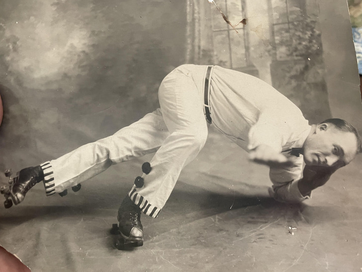 - “You are probably right, I found this photo in my mother’s garage, and she was 82. I really don’t know anything else other than it was my grandfather and the story told was he was a professional roller skater.” © Brewcrew1886 / Reddit