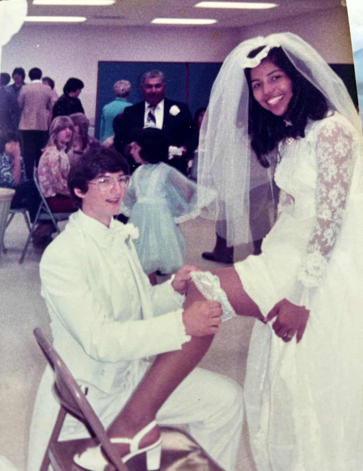 - “Your dad’s white tuxedo and your mom’s lace sleeves are absolutely iconic. This screams early 80s elegance. They look genuinely happy, too, not just doing the stiff formal wedding photo thing.” © WonderfulSofia6462 / Reddit