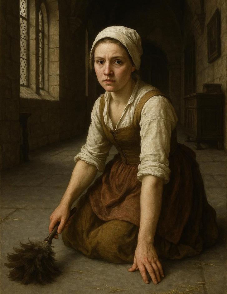 And all because these floors were simply beaten earth. A floor could be plastered or stone, but in any case, it was strewn with reeds and straw. In spring and summer, flowers and herbs were added to mask unpleasant odors. The floors were quite dirty since this flooring was changed rather infrequently, by sweeping away the old straw with makeshift tools like bird feathers.