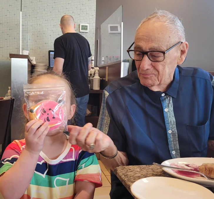 “I saw a man eating alone in a restaurant who was looking over at us. I asked my daughter to wave, and then we went over and chatted with him for a few minutes. Later, a server came over and said, ’The man over there asked me to give this to your daughter.’”