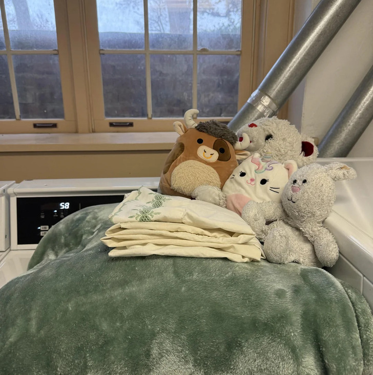 “Someone neatly folded my blankets and gently placed my stuffed animals on the dryer in my college dorm.”