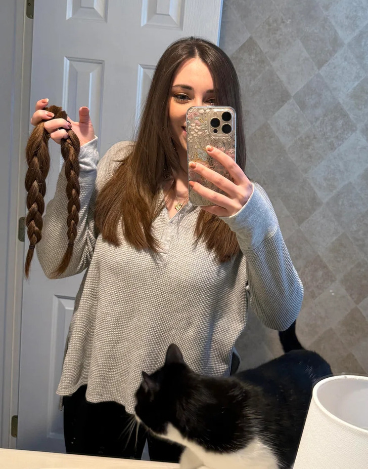 “Today, I donated my hair for the first time! 13.5 inches!”