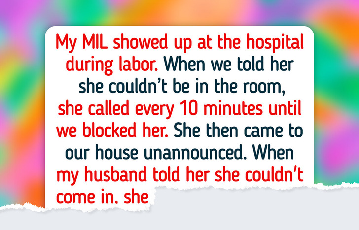 • My MIL showed up unannounced at the hospital during labor. When she was told that she couldn’t be in the room, she proceeded to blow up our phones every 10 minutes until we both had to block her number.
