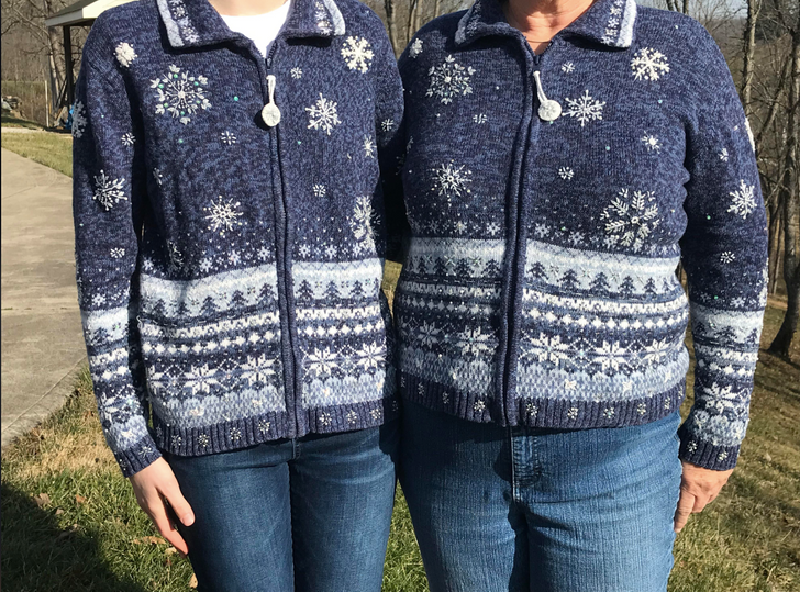 “Found at the local Goodwill: an exact copy of the sweater my mom has owned for at least a couple decades.”
