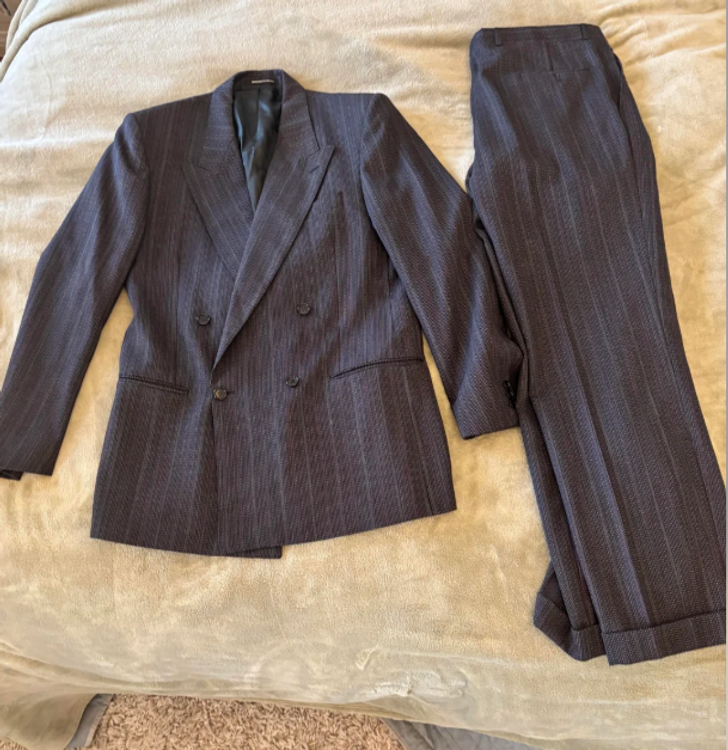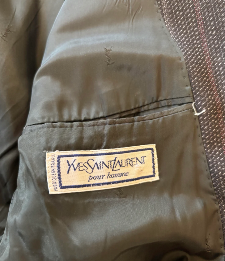 “Found this two piece ’Made in France’ Yves Saint Laurent full suit with a wool blazer and trousers.”