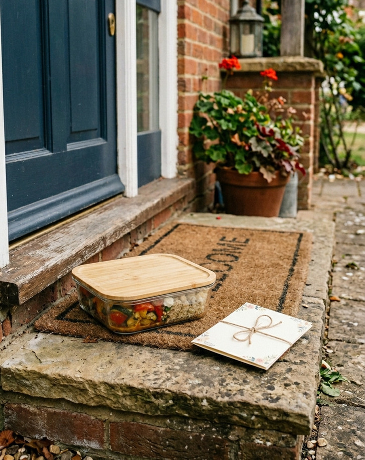 Every day there was something new, still warm, left quietly on the mat. I never opened the door while it was happening. I just took the containers inside later and didn’t say anything. It went on for about two weeks.