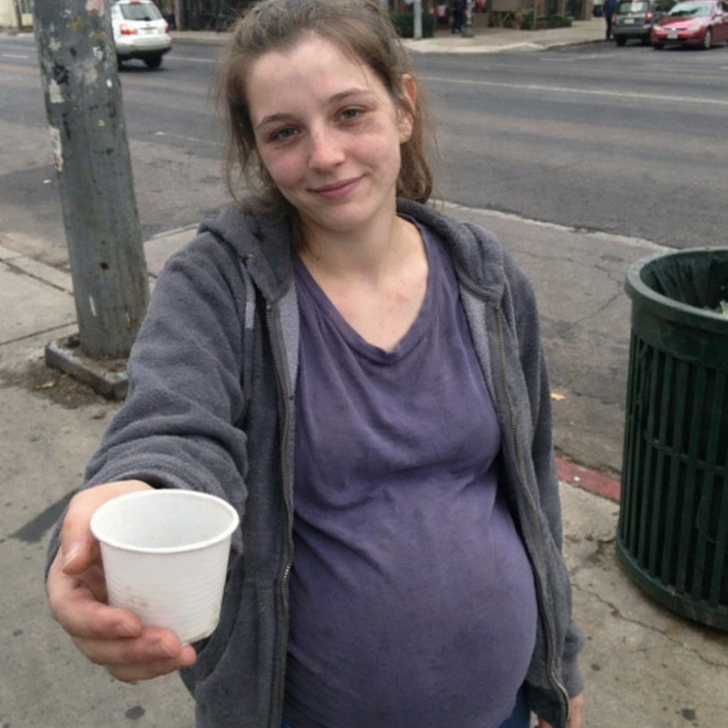 A pregnant teenager with bruises on her face and arms was begging for hot soup near a store. My husband shouted, “Get a job and get sterilized!” I quietly slipped her $200. She left without a word.