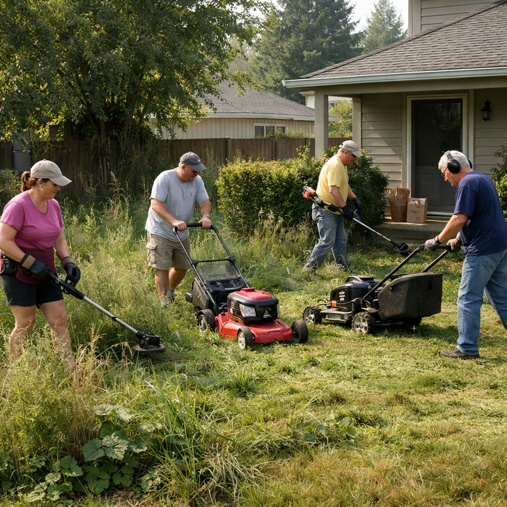 One Saturday morning, I looked out and saw four different neighbors out there with mowers and weed-whackers. They didn’t knock on his door. They just mowed the whole thing, trimmed the hedges, and left a box of local coffee on his porch.