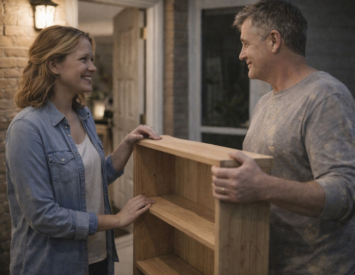 I have thirty-one birthdays behind me. I’ll remember this one forever. It didn’t come with a candle. It came with sawdust on his shirt and a shelf that’s slightly crooked. It’s the most valuable thing I own.