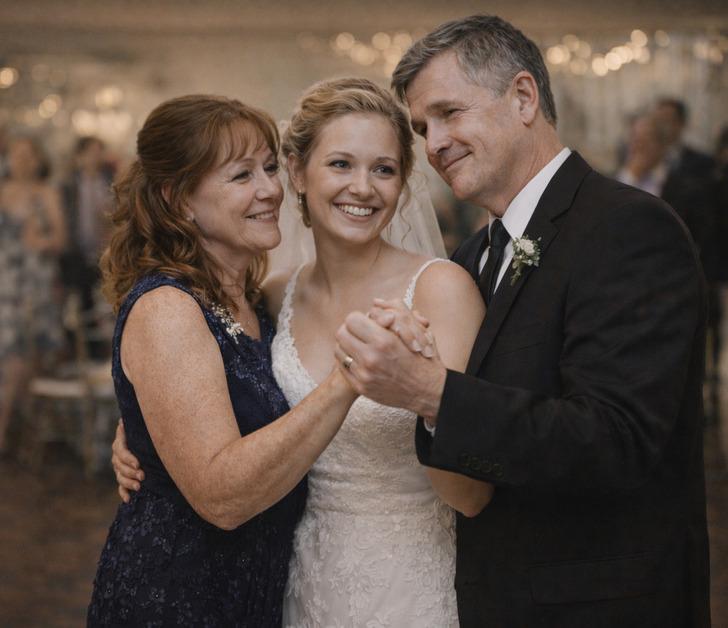 Then during the father-daughter dance my mom did something nobody expected. She walked onto the floor, took my dad’s hand, and said, “She needs both of us for this.” They danced with me. One on each side. The whole room went quiet.
