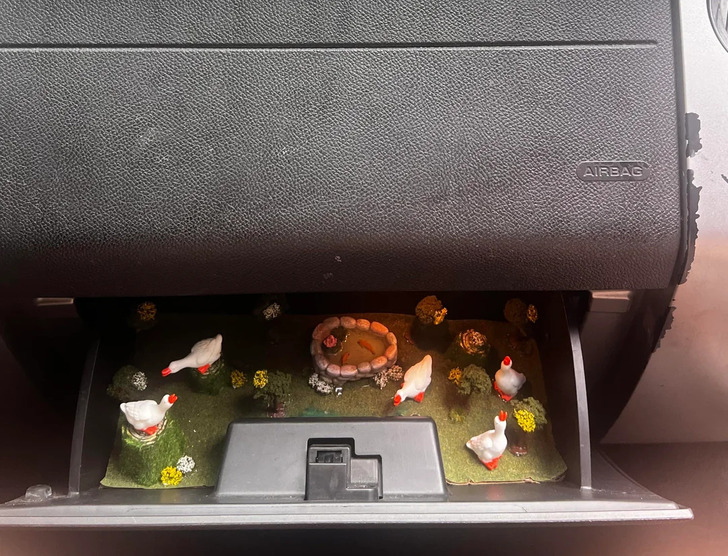 8. “My nephew left his car at my place for a week. My daughter and I thought it’d be fun to leave a little surprise in his glove box for him.”