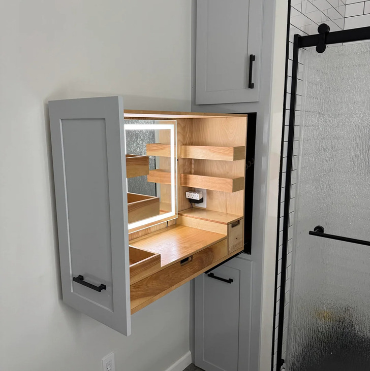 9. “Made a slide-out makeup vanity for the wifey.”