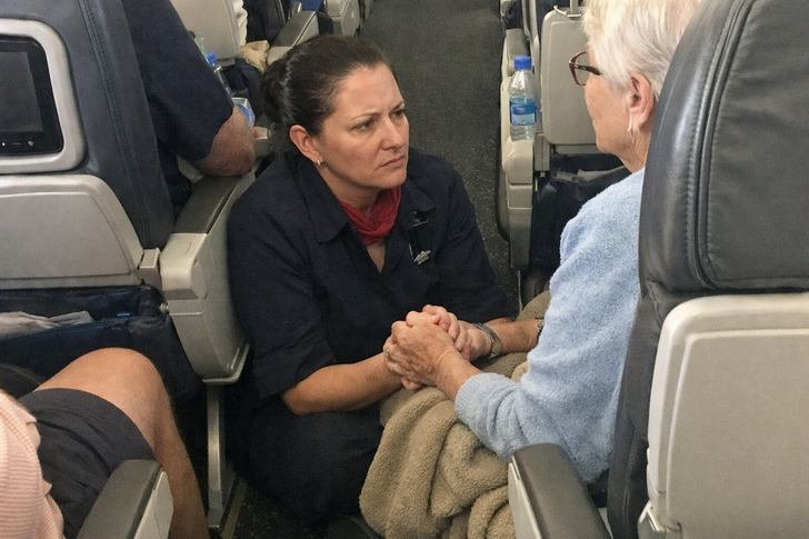 Everyone on the plane complained about the attendant who looked like she’d never smiled in her life. Halfway through the flight, an elderly passenger had a panic attack. This “mean” attendant sat on the floor in the aisle, holding the woman’s hand for three hours straight. She didn’t care about the other passengers or her “cool” image.