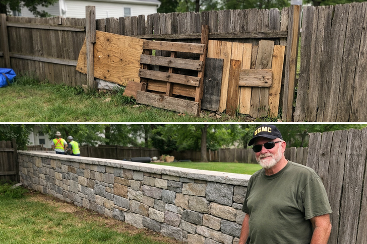 On Monday, a professional crew showed up. He’d paid for a top-tier stone wall for both our yards. He told me, “I watched you struggle and not complain. You proved you’re a good man.”