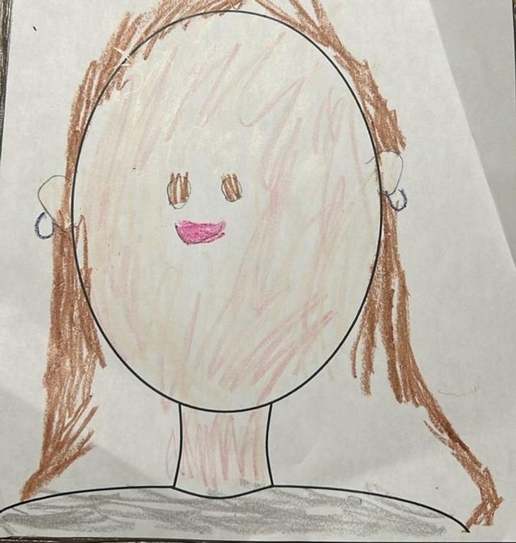 My 5-year-old’s self-portrait has me dying.