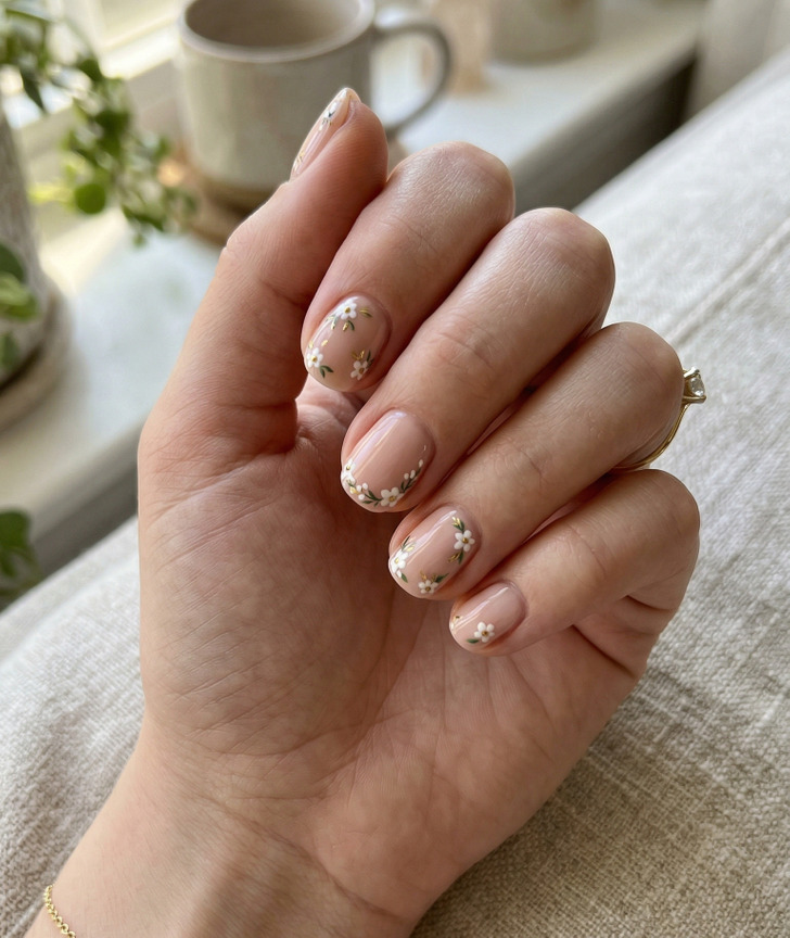 Tiny flower nail art is blooming everywhere this season. Delicate, intricate blossoms on neutral or pastel bases create a look that’s both sweet and sophisticated.