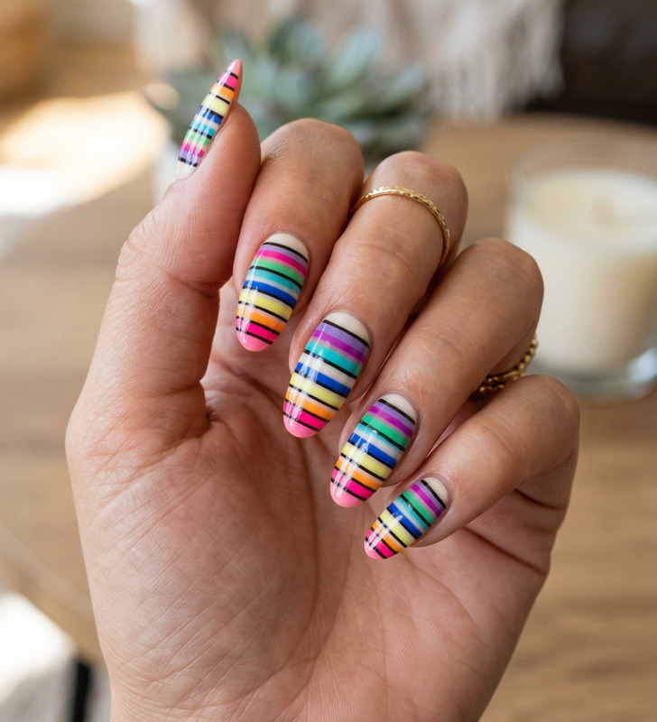 If the clean girl aesthetic is truly fading, 2026 is your moment to go bold with your nails. Think loud, playful designs with a vibrant pop mood that perfectly complements sun-kissed skin. Colors may clash at first glance, but somehow come together in a way that feels fresh.
