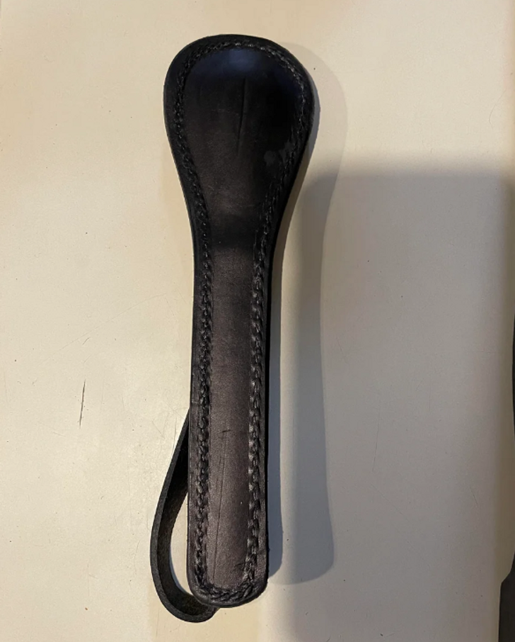 14. “Leather thing that has a strap that wraps around the back of your hand.”