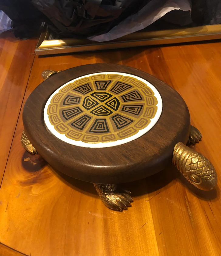 7. “I found this turtle for $15 with a flat top that I thought was cute! I got it home and realized it had a secret. It’s a small serving plate!”