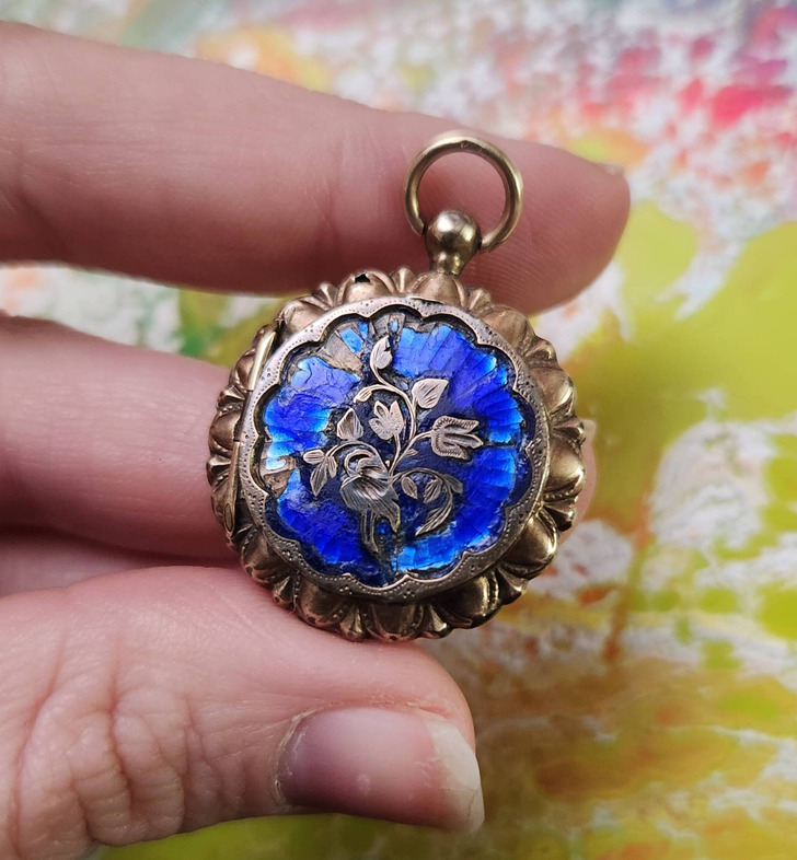 13. “It’s a little rough around the edges... but I love it. Found today in a $4 jewelry bin. A Victorian gold with blue enamel locket.”