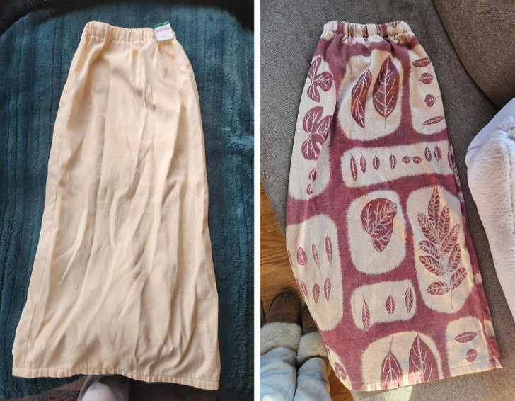 12. “Get ready to gasp. I dyed a skirt I thrifted. Didn’t realize it was different materials and would dye differently.”
