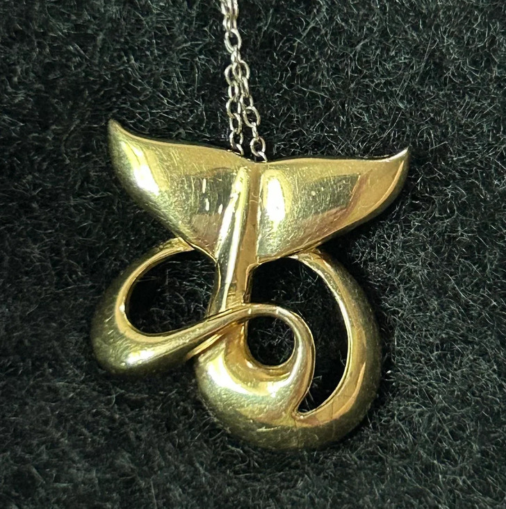 - It’s known as “The Diving Whale Tale”. I’d say it’s 14ct gold, what a beautiful piece of jewelry, has a calmness about it. © Less_Imagination_149 / Reddit