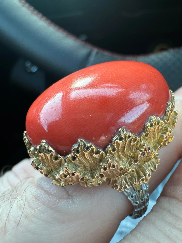 9. “What a find at the thrift! 18k coral ring. Trying to identify jeweler.”