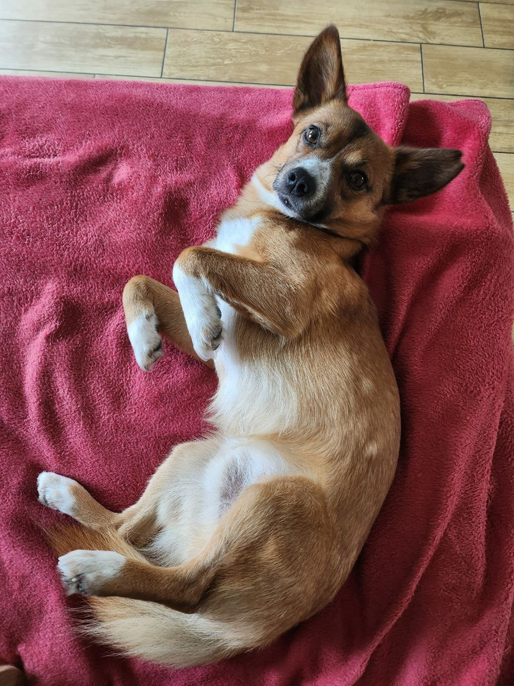 She was dog-sitting a smart little red dog named Mena for a couple of weeks while the owners were away. So I curled up on the couch, crying and unable to stop. And Mena, who had never seen me before, started licking away my tears!