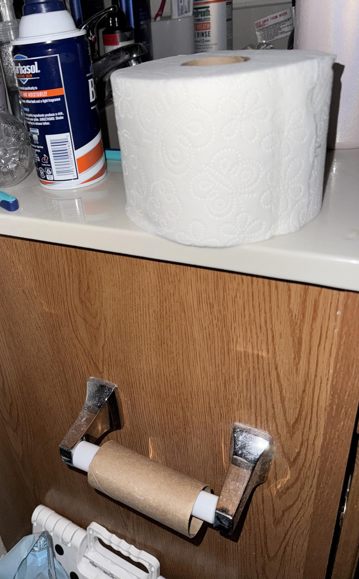 Had a conversation with my husband yesterday about not leaving the toilet paper roll empty... Today I find this. So close.