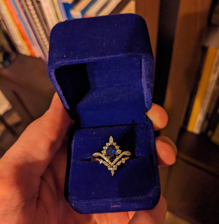I’ve had the ring for a little over 2 months now. Hid it behind some old books on the shelves in my office. After some of our friends started posting old yearbook photos in our group chat, she ran to go look through our yearbooks too. It didn’t occur to me until too late... So much for surprises.