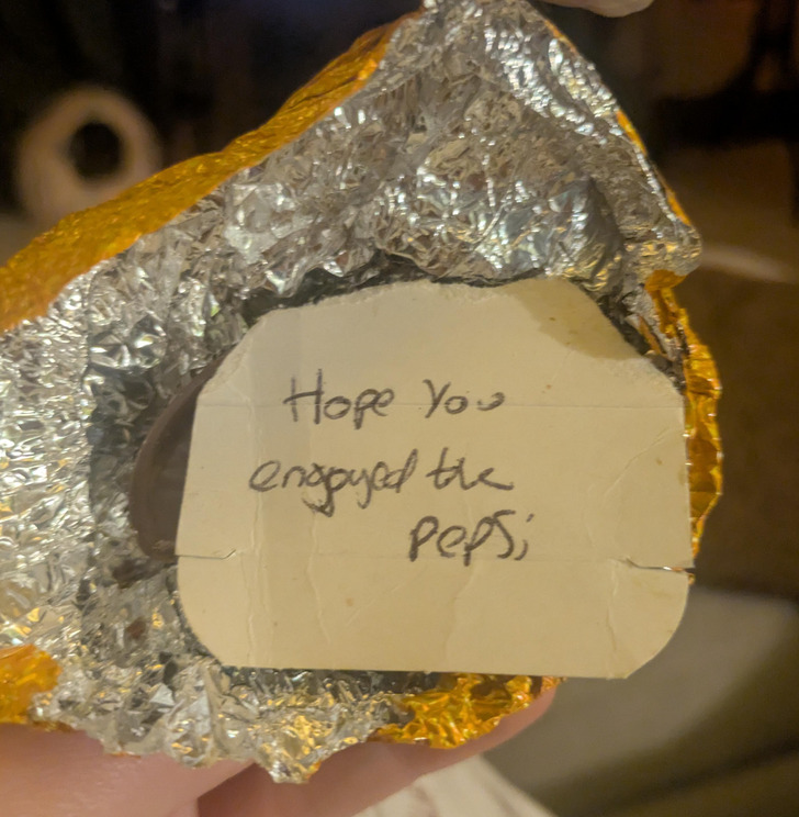 Stole a can of Pepsi from my fiancé of 9 years. This is how I find my Terry’s chocolate orange.
