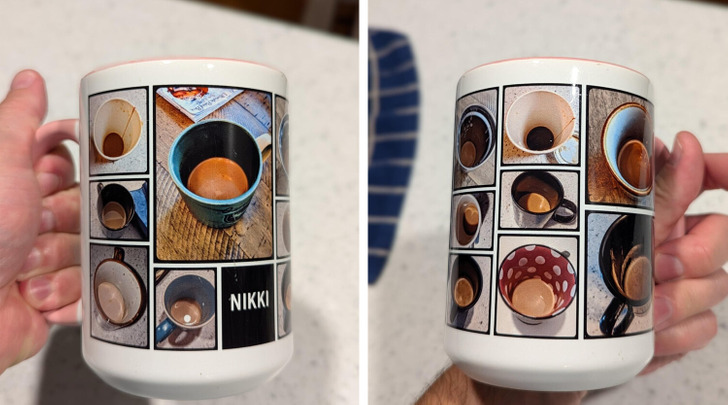 - When I met my (now) husband, he had a mug with a picture of an ex-girlfriend drinking out of a mug with a picture of him on it. So naturally I took a selfie of me drinking out of it and made it into a mug for him. © LittleWhiteBoots / Reddit