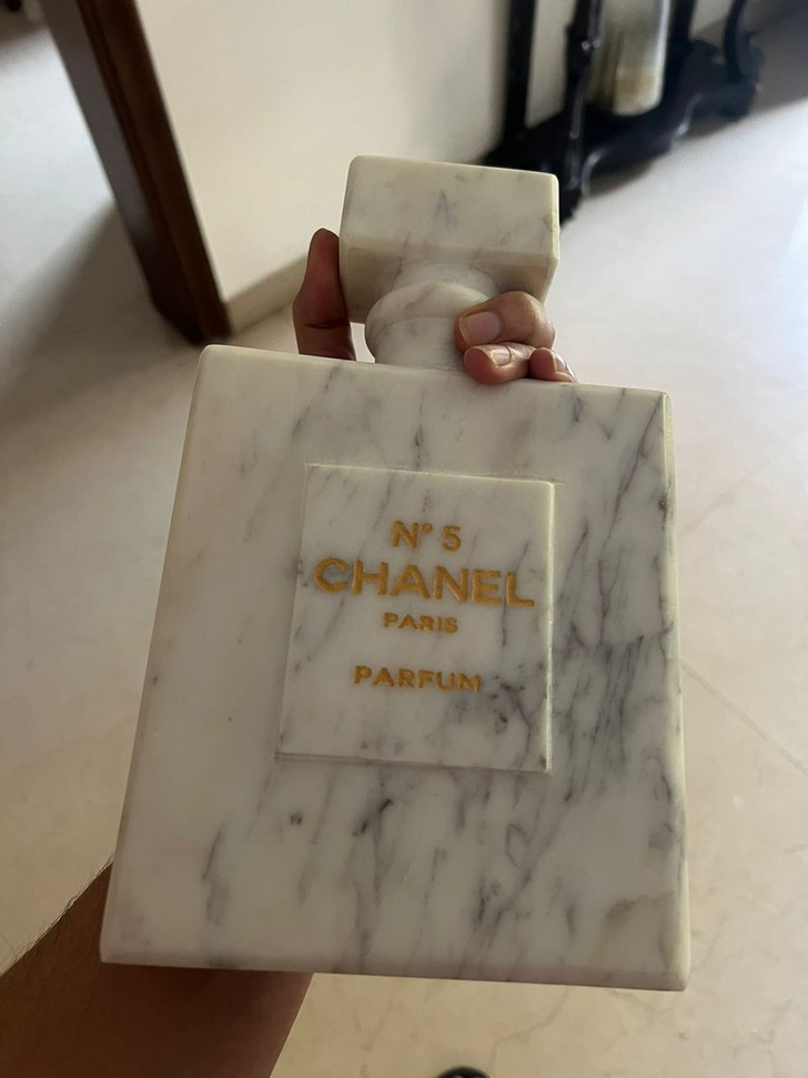 My dad just retired and wanted to do something special for my mom’s 50th birthday. She’s a huge fragrance lover, so he surprised her with this handcrafted marble piece.