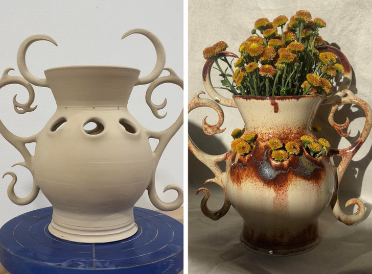 I made a vase. Check out how it looks now with glaze and flowers.