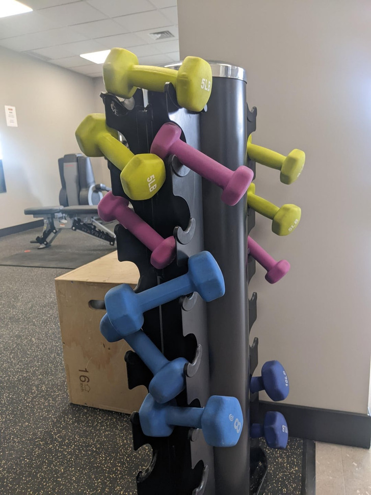 The way these weights are placed at my apartment gym