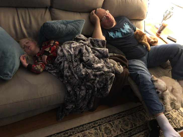 Asked my father to babysit his granddaughter during the day. I enter the room, and they are like this.