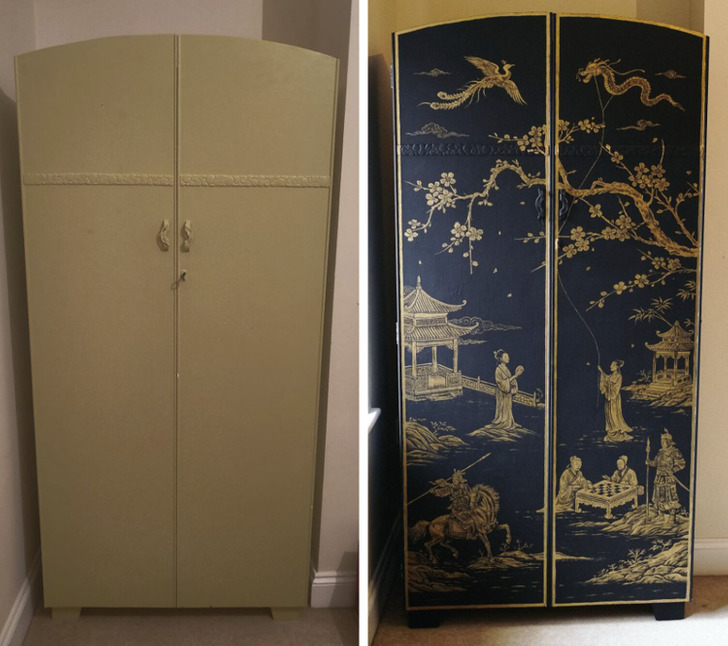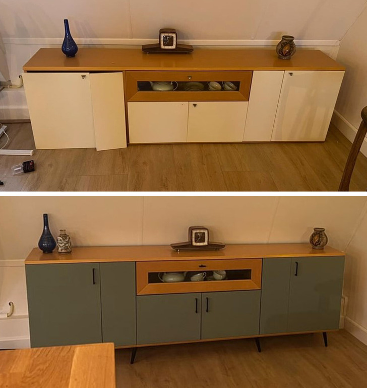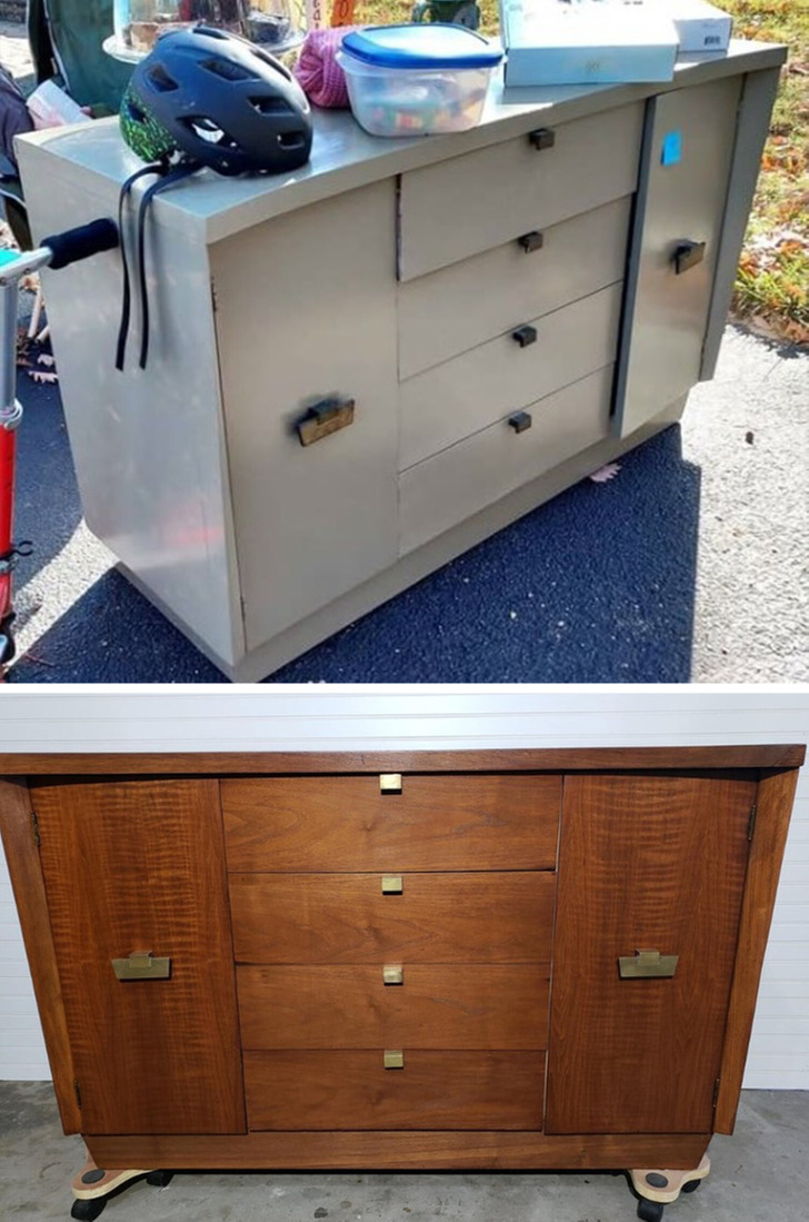 - It looked like a metal shop cabinet in the first picture. Jaw-dropping transformation! © Knife-yWife-y / Reddit