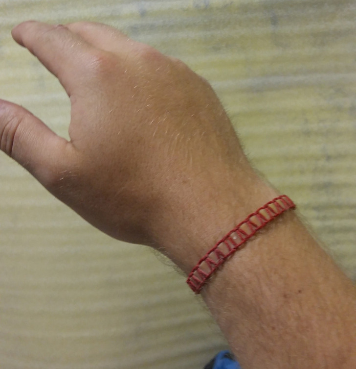 About 3 years ago my daughter gave me a glowing bracelet as a gift. I’ve been wearing it without taking it off. Recently it broke, so I asked my wife to make a wrap out of strong thread, and I continue to wear it.