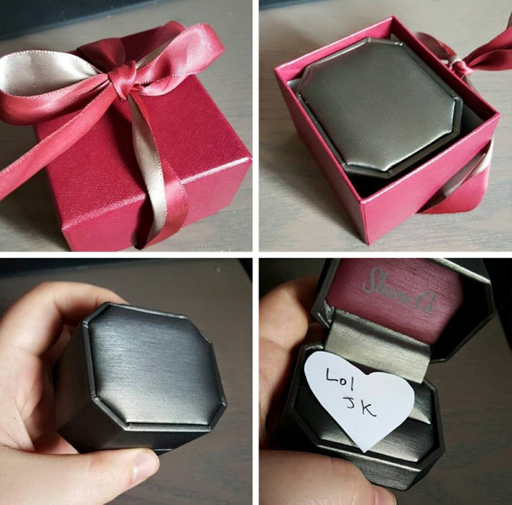 We’ve been dating for 10 years. Here’s what my boyfriend gave me for Christmas. Cheeky devil! I love him so much. I know he bought a ring, but he decided to tease me.