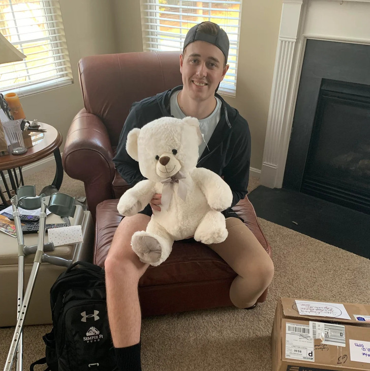 “I recently had my leg amputated, and someone anonymously sent me this bear. I didn’t even notice that the bear was made to look just like me. Thank you, anonymous donor.”