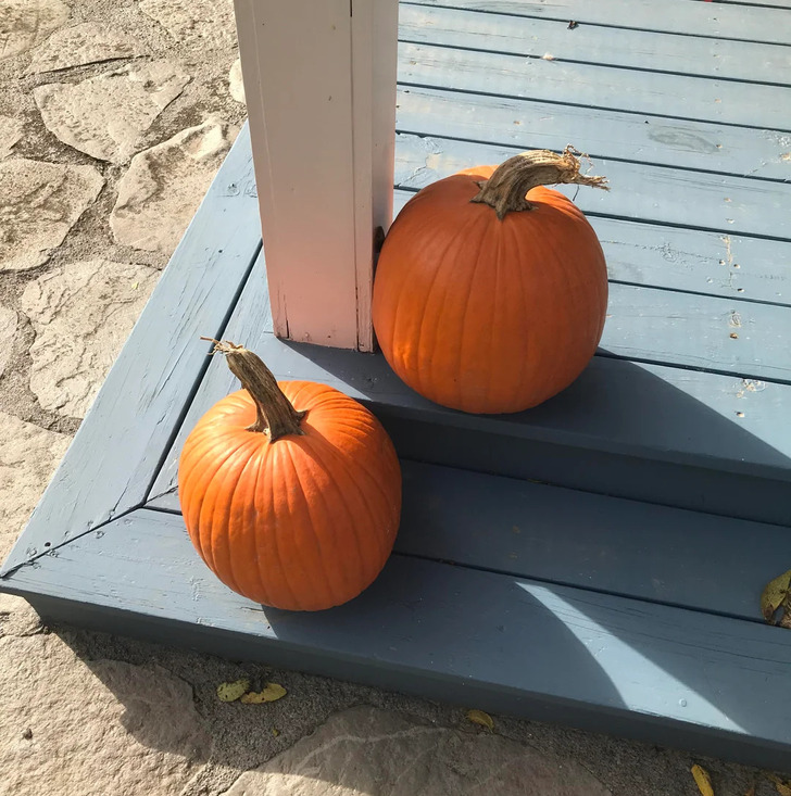 “In celebration of the spooky month, someone put pumpkins on everyone’s doorstep.”